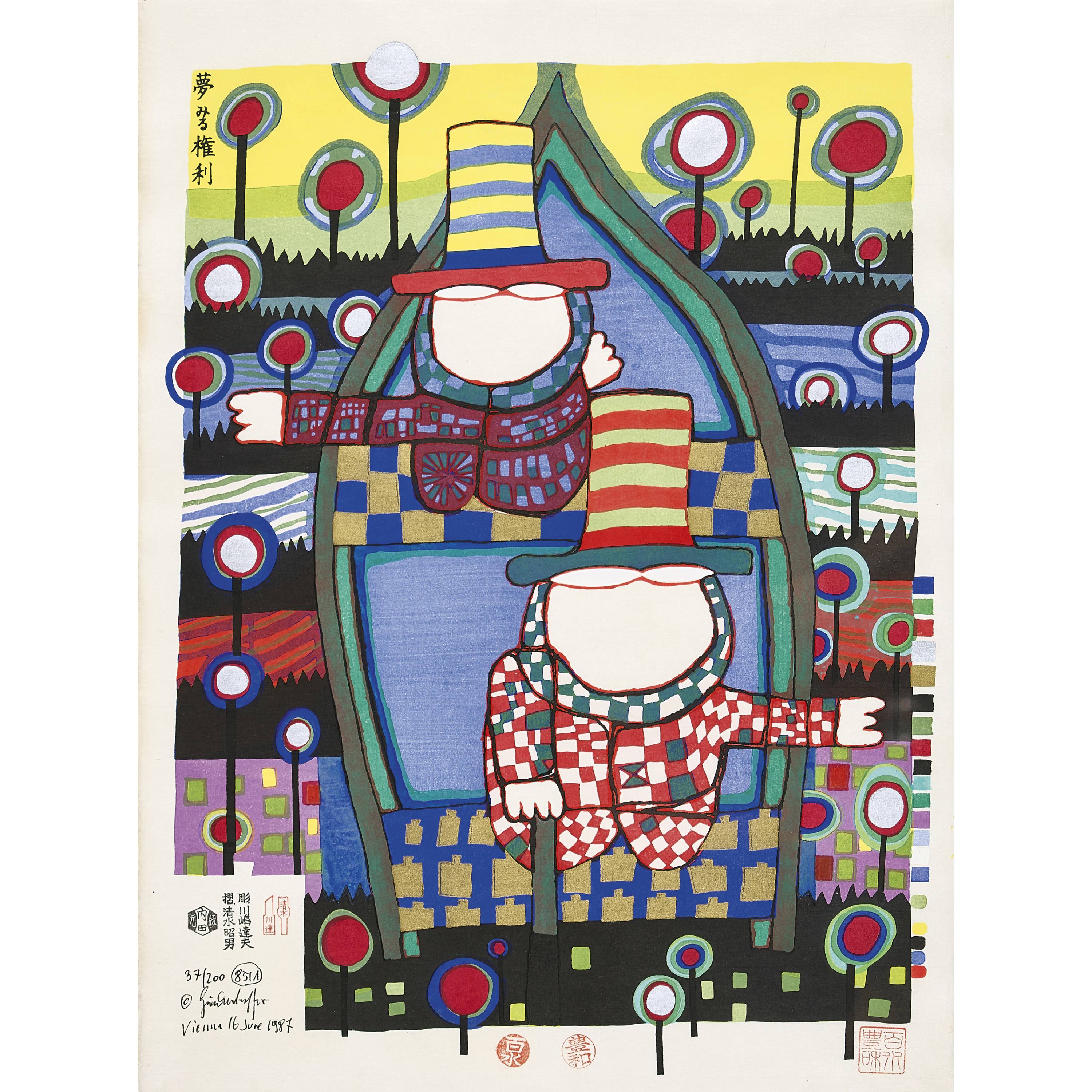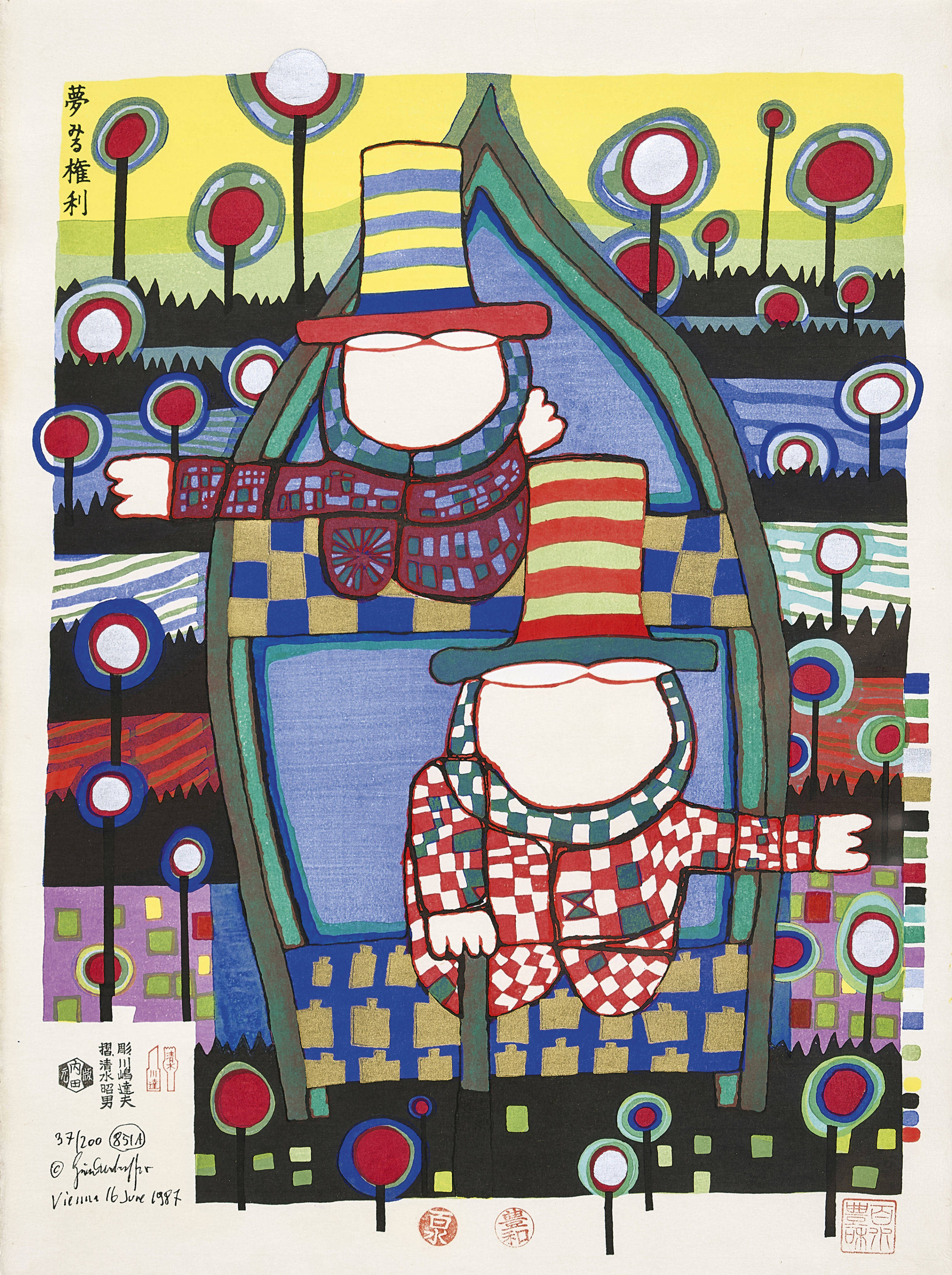 In aufwendigem Rahmen im Hundertwasser-Stil.