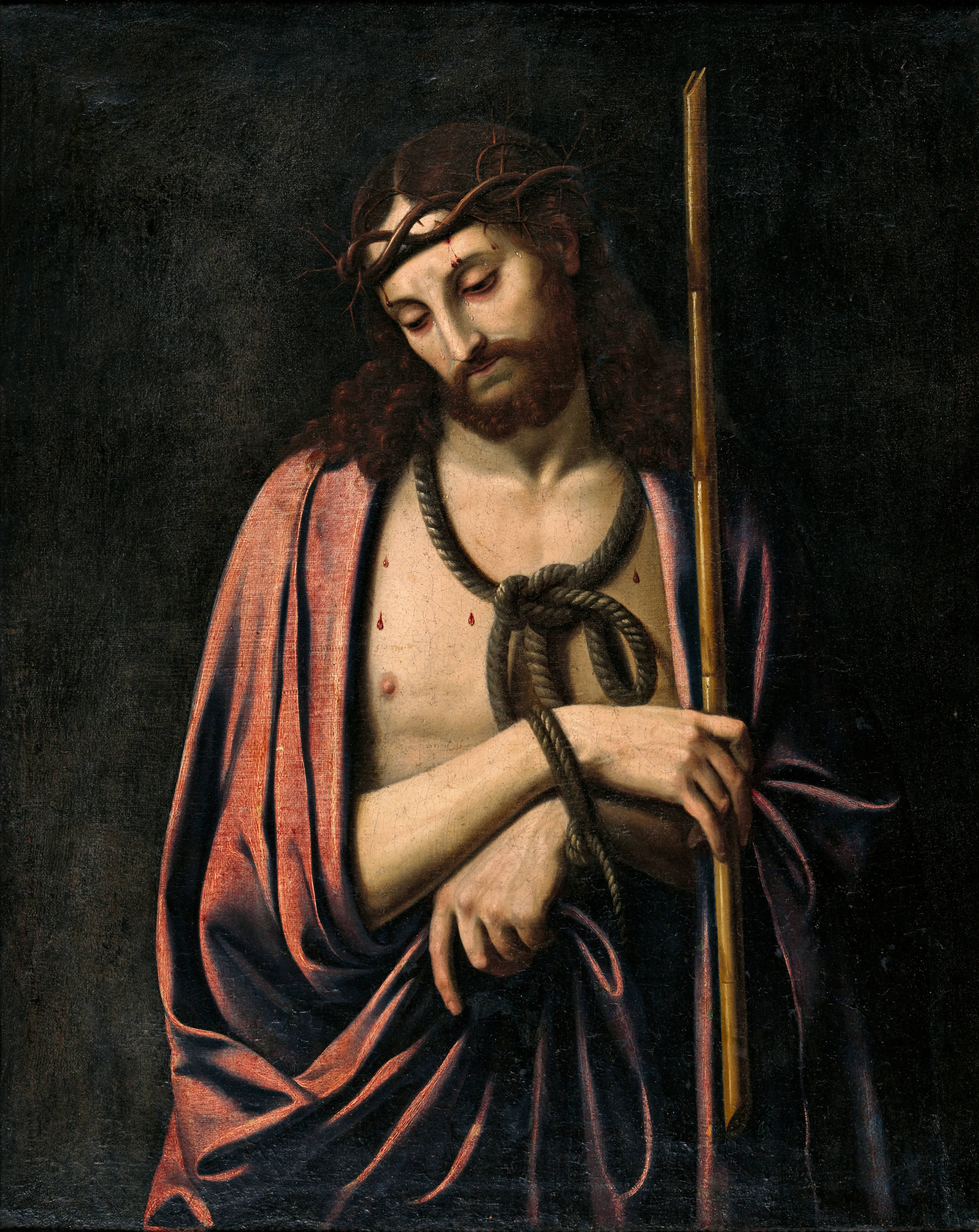 Das angebotene Werk geht auf eine berühmte Komposition von Andrea Solari zurück, von welcher sowohl zwei eigenhändige Fassungen existieren (Museum der Bildende Künste in Leipzig und Museum of Art in Philadelphia) als auch etliche Versionen aus der Werkstatt des Künstlers oder vielleicht auch von dritter Hand.