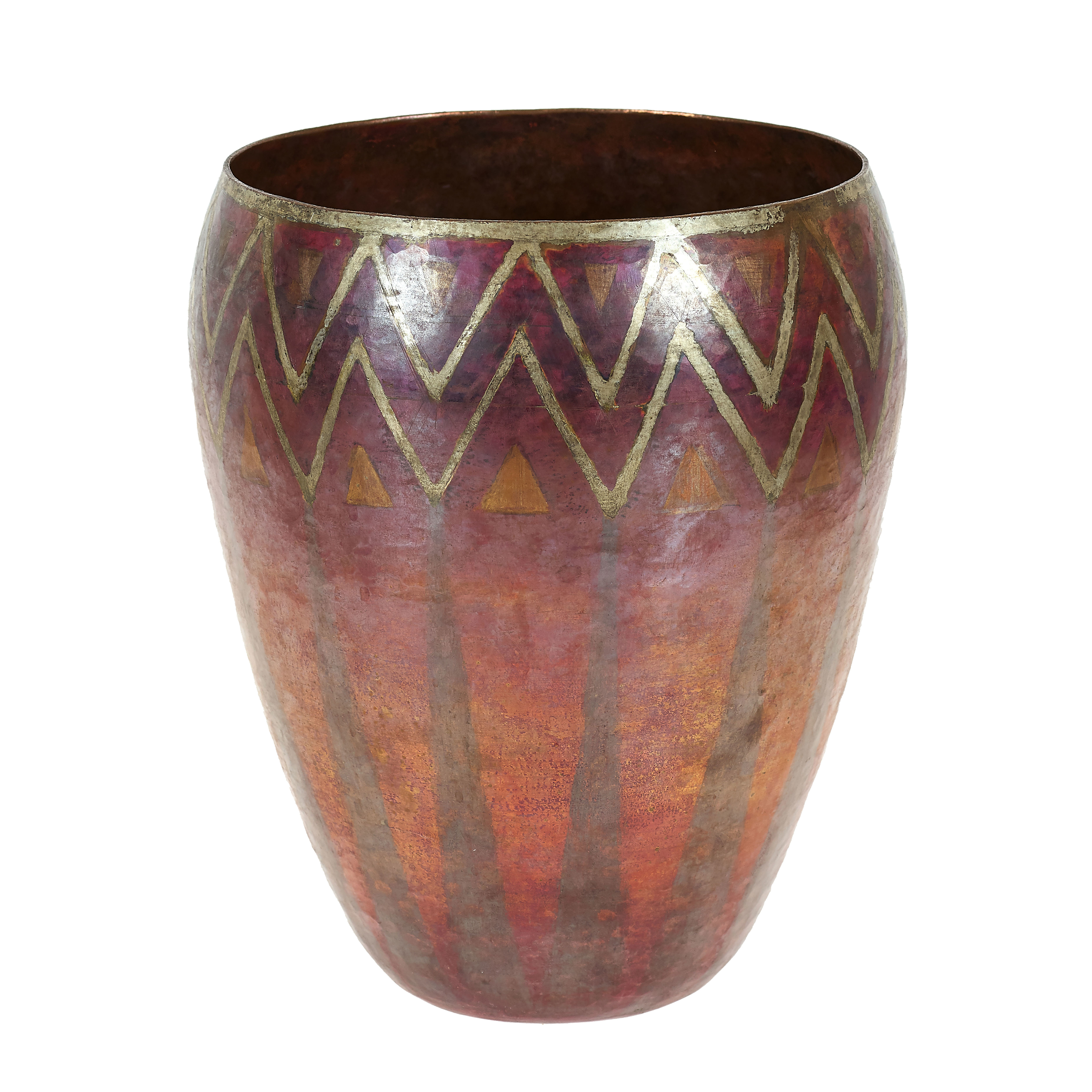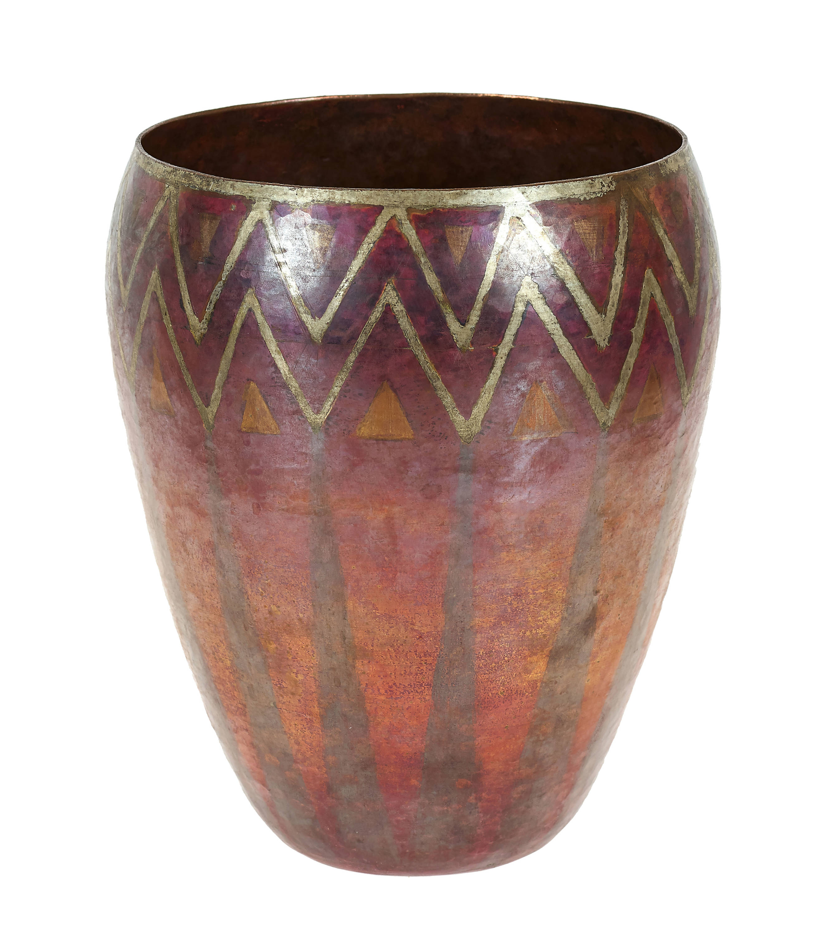 Bronze-Dinanderie, patiniert, verkupfert und partiell versilbert,