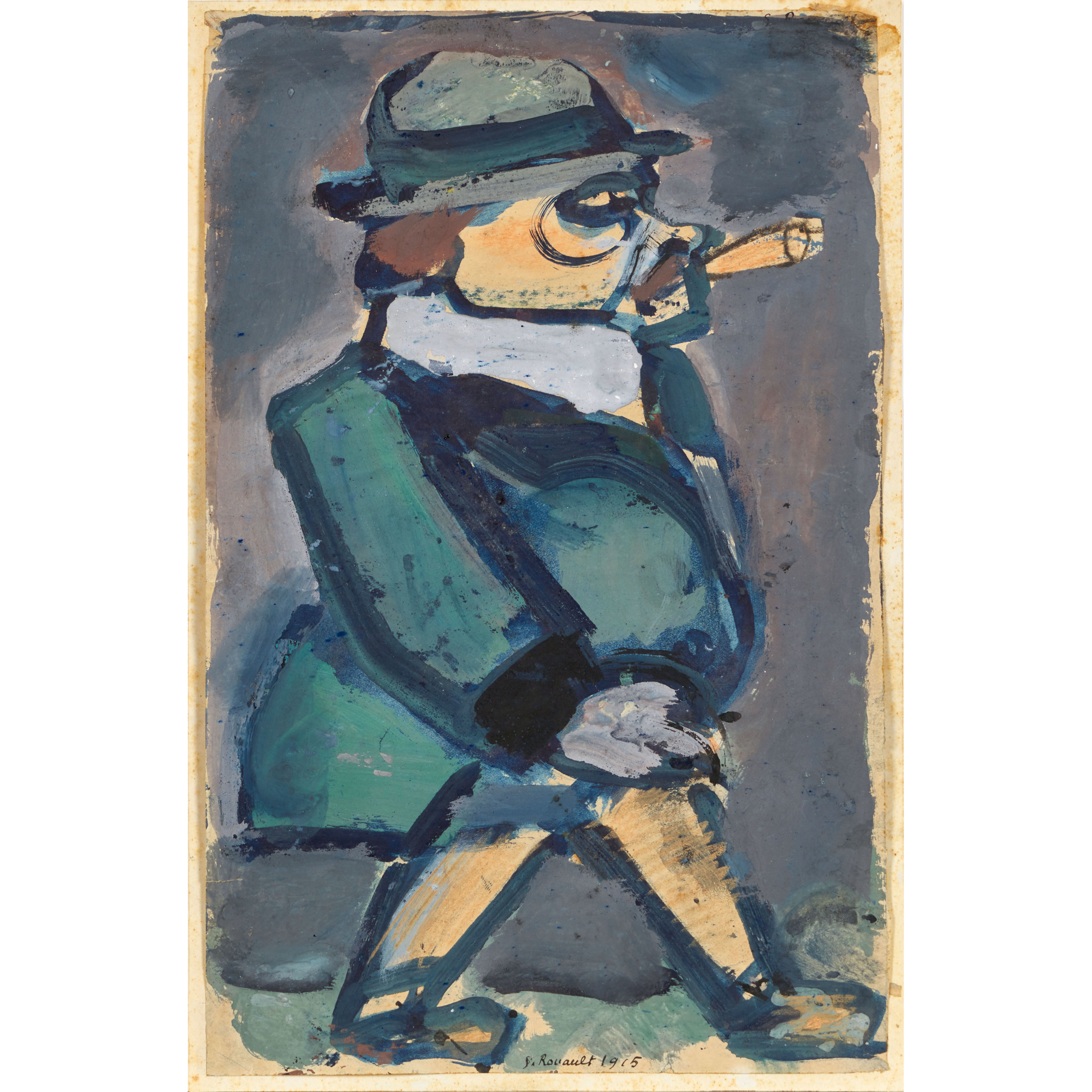 Georges Rouault absolvierte 1885-1890 eine Lehre als Glasmaler bei einem Restaurator von mittelalterlichen Kirchenfenstern und belegte nebenbei Abendkurse an der École des Arts Décoratifs in Paris. Anschliessend studierte er an der École Nationale Supérieure des Beaux-Arts bei Gustave Moreau, von dem er sich bis kurz nach der Jahrhundertwende deutlich beeinflusst zeigte. Unter dem Eindruck von Honoré Daumier und Henri de Toulouse-Lautrec beschäftigte er sich in der Folgezeit mit sozialen Themenkreisen und kam 1905 mit dem Fauvismus in Berührung. In jener Zeit entstanden Porträts von Clowns, Dirnen, Bauern, Heimatlosen, hohen Beamten und biblischen Figuren, die Rouault mittels kräftiger, schwarzer, an die Bleistege von Glasgemälden erinnernder Konturen und farbintensiver Binnenflächen auf der Leinwand oder als druckgrafische Erzeugnisse festhielt. In den 1930er Jahren verzeichnete der Künstler auf internationalen Ausstellungen grosse Erfolge. Im Zuge eines Prozesses, der im Zusammenhang mit dem Tod seines Kunsthändlers Ambroise Vollard (1865-1939) eröffnet wurde, zerstörte Rouault im November 1948 vor den Augen des Gerichtsvollstreckers 315 seiner Werke.