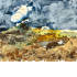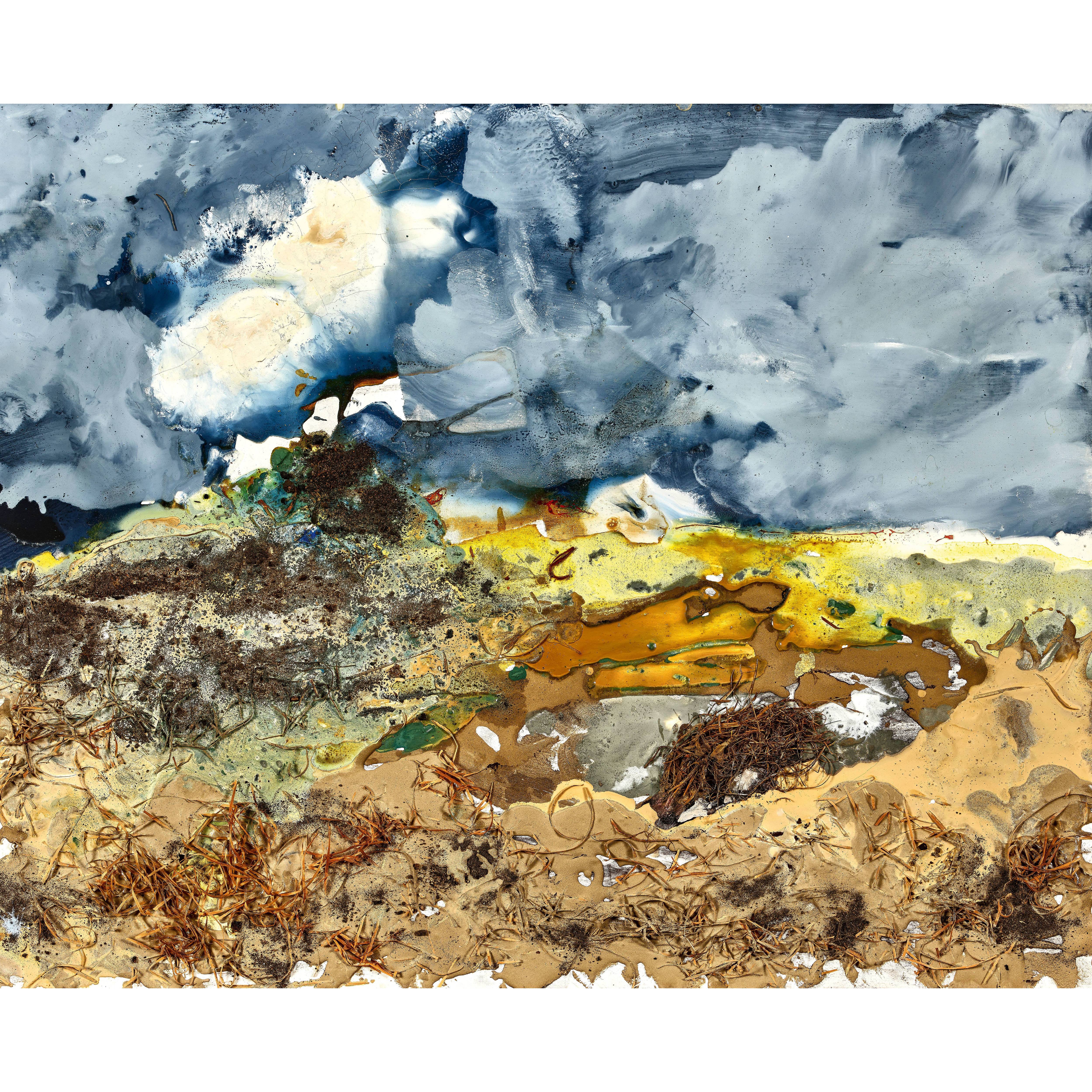 Mischtechnik mit Erde, Holzwolle und Ölfarbe auf Leinwand,
