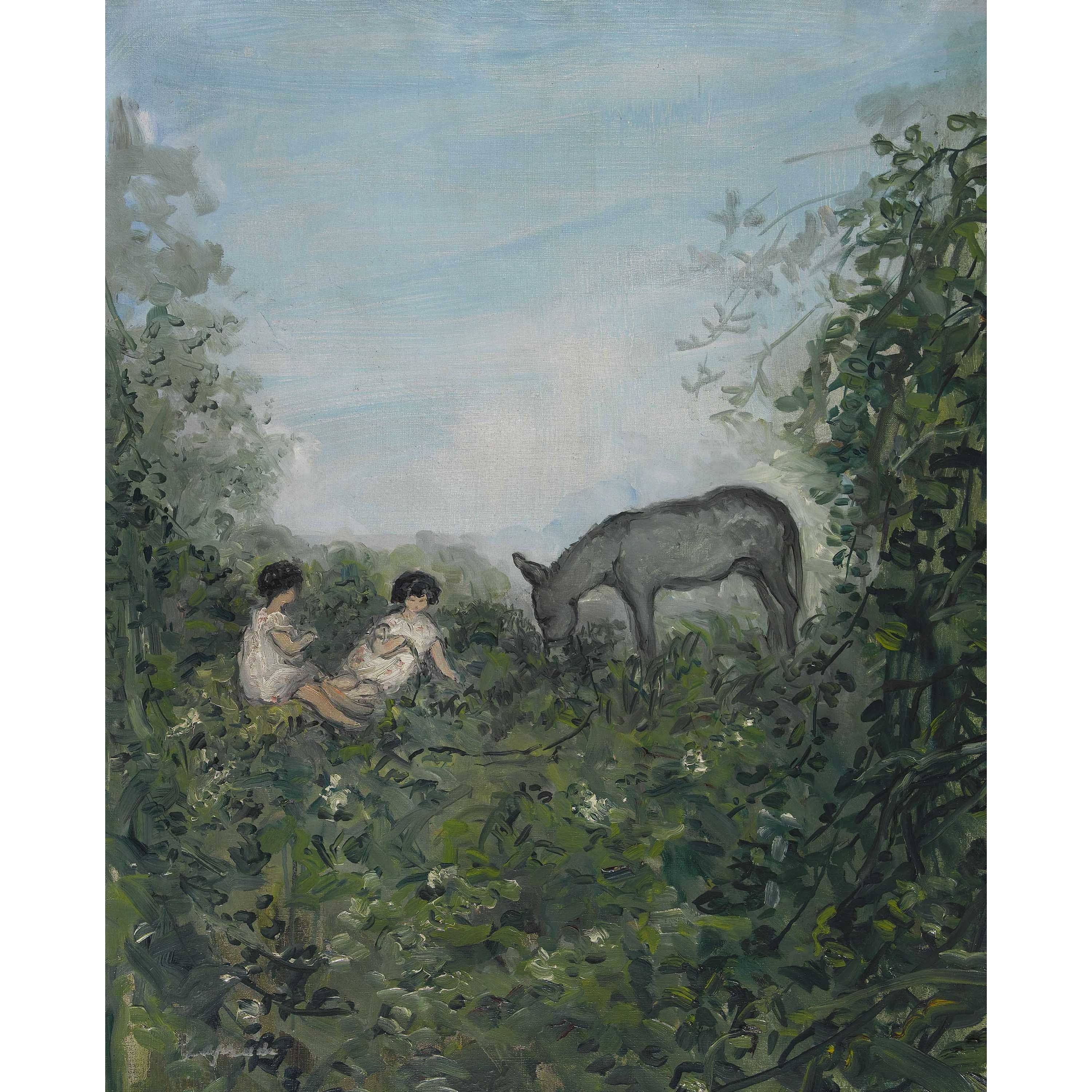 Paysage avec deux femmes et un âne.