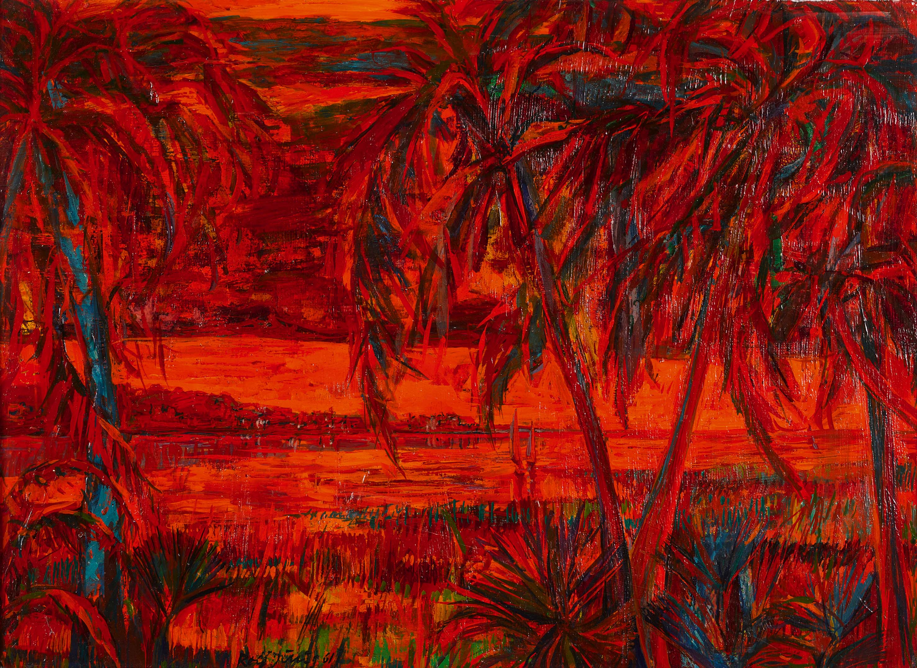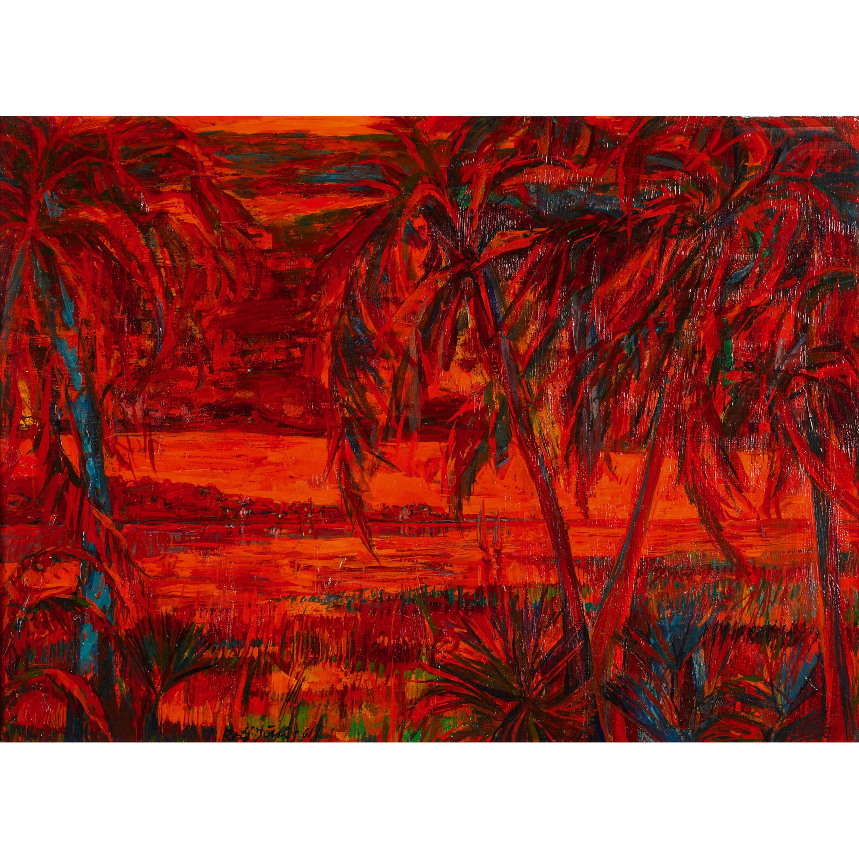 Uferlandschaft mit Palmen.