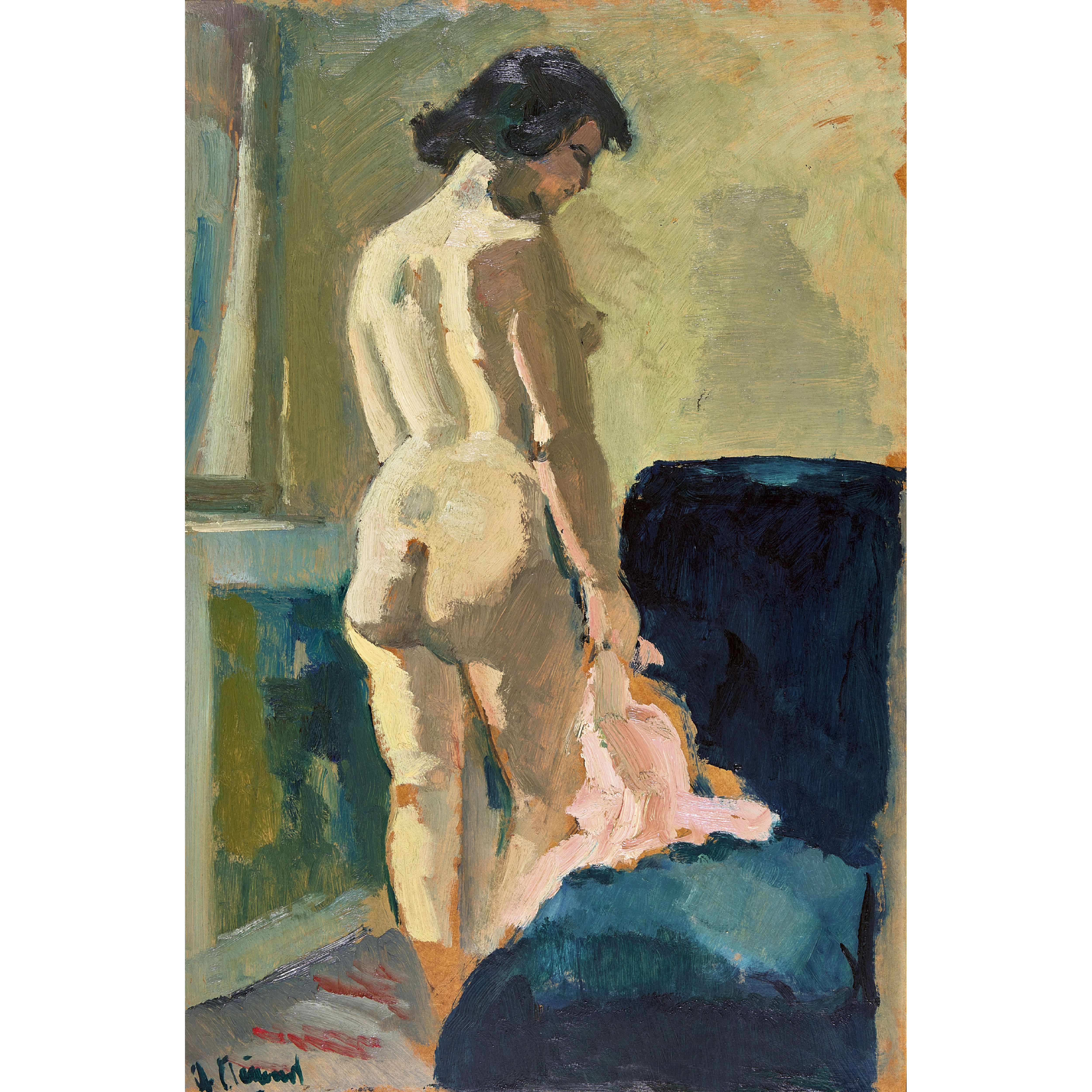 Stehender weiblicher Rückenakt.