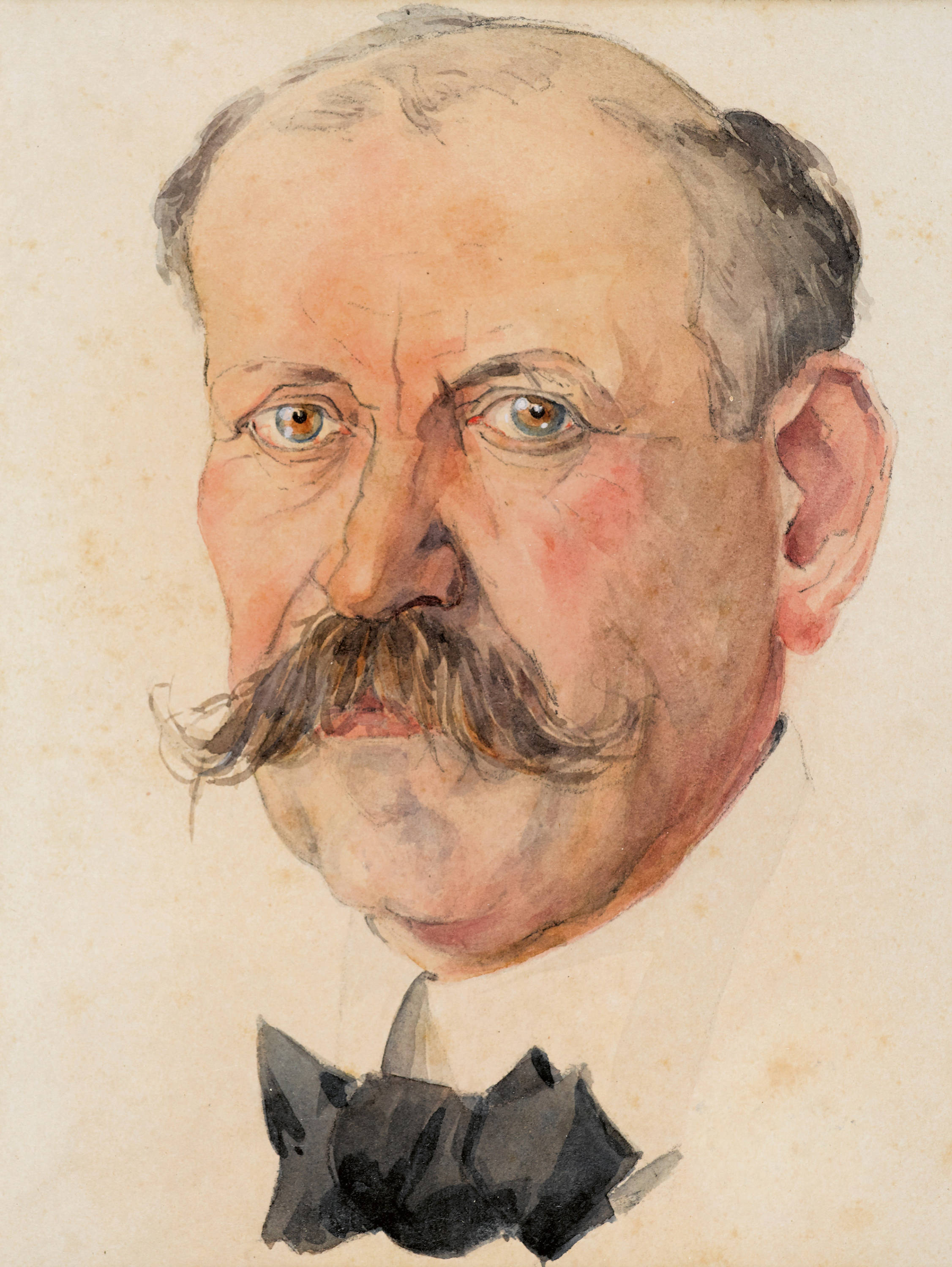 Kopfporträt eines älteren Herrn mit Schnurrbart.
