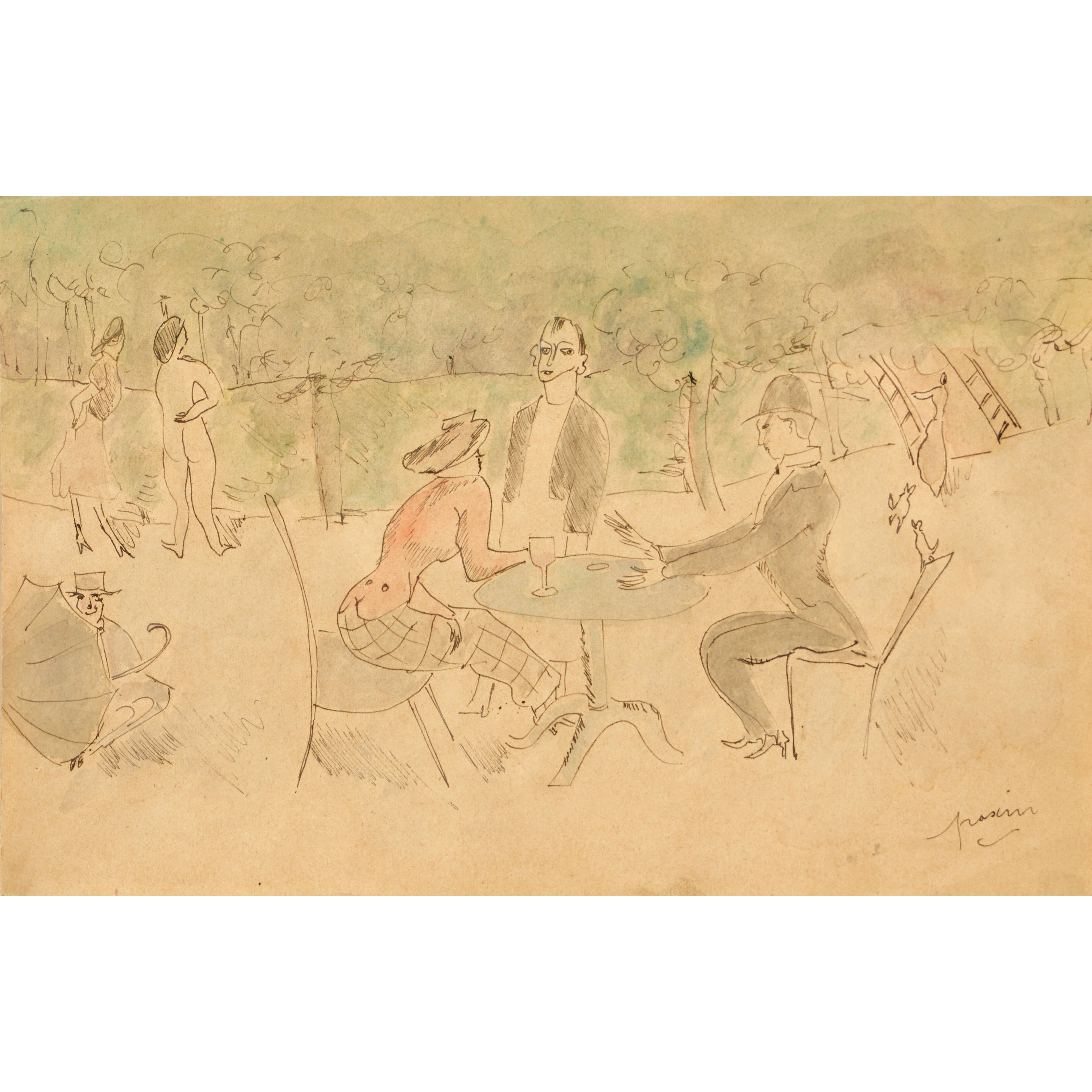 Tusche und Aquarell,