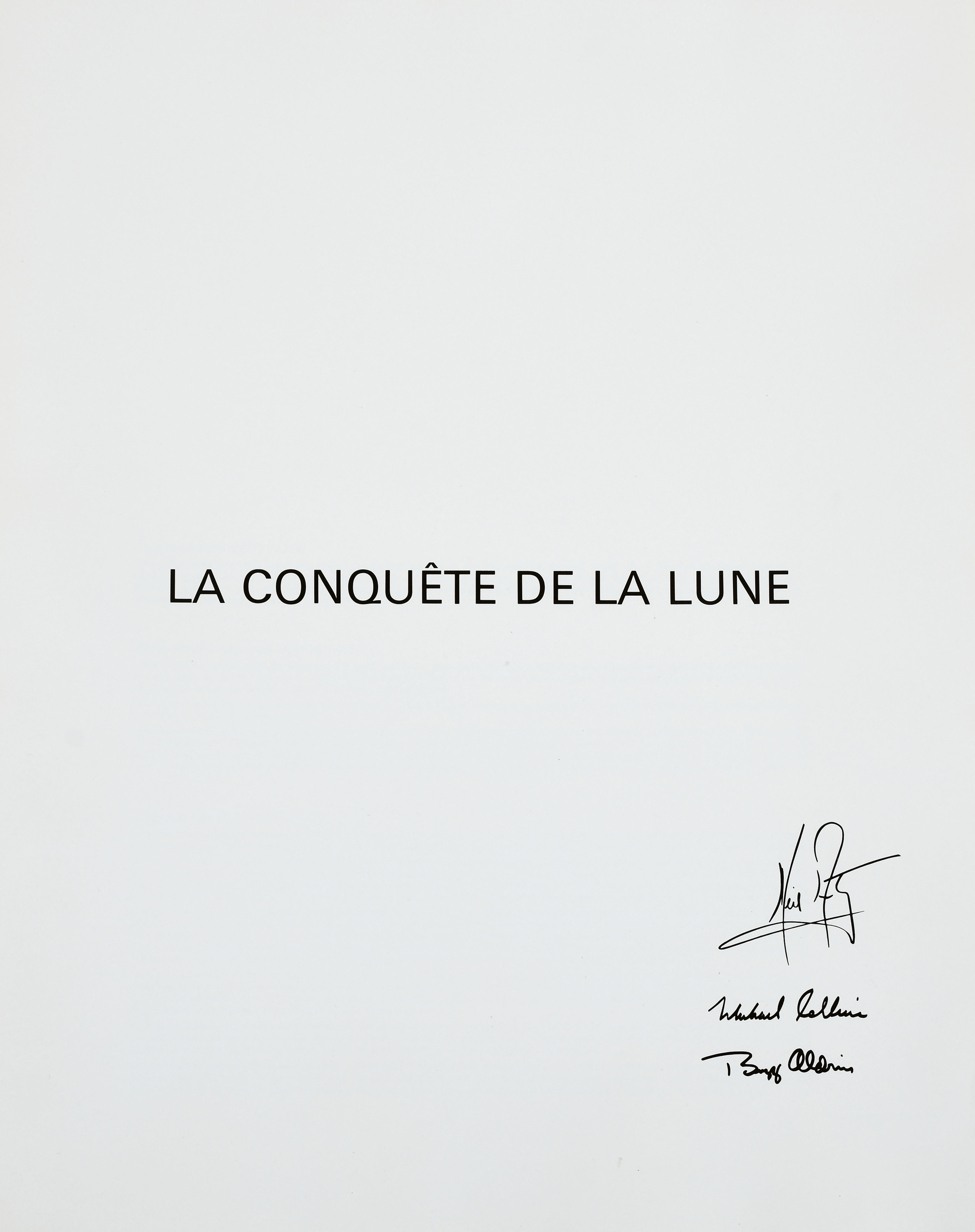 Dazu: 6 reproduzierte Fotografien auf Tafeln sowie ein reproduziertes Porträt mit Signatur von Neil Armstrong.