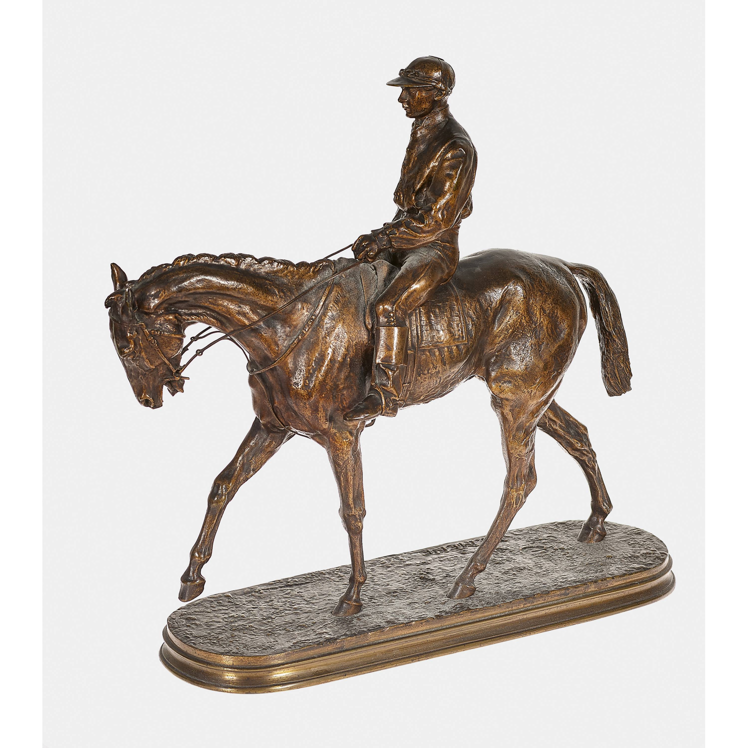 Bronze, patiniert, a. Sockel sig. "P.J. Mêne", seitlich bez. "Military de Limoges Mai 1880",