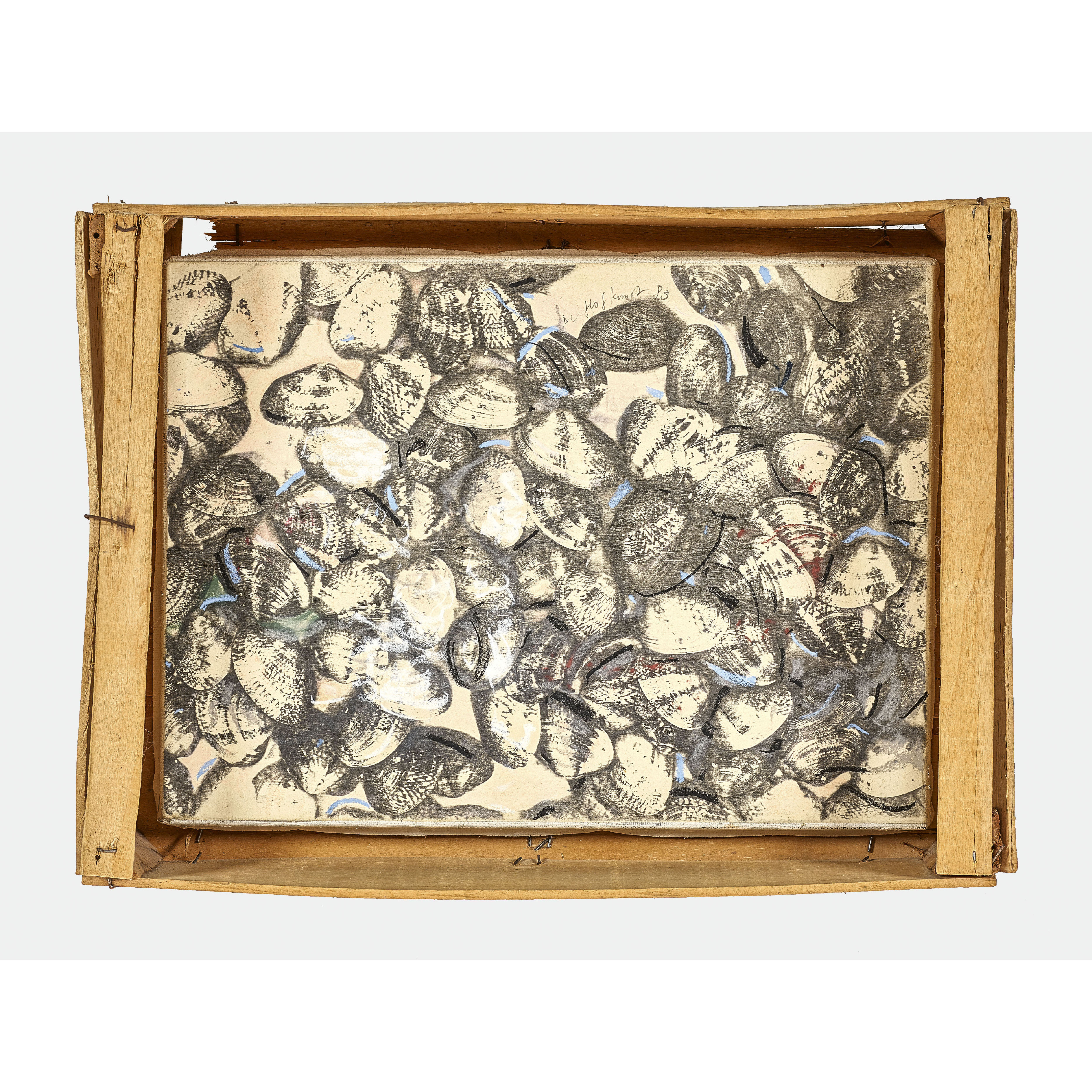 Multiple aus Ölkreide über Faksimile auf Leinwand, in Holzkiste,