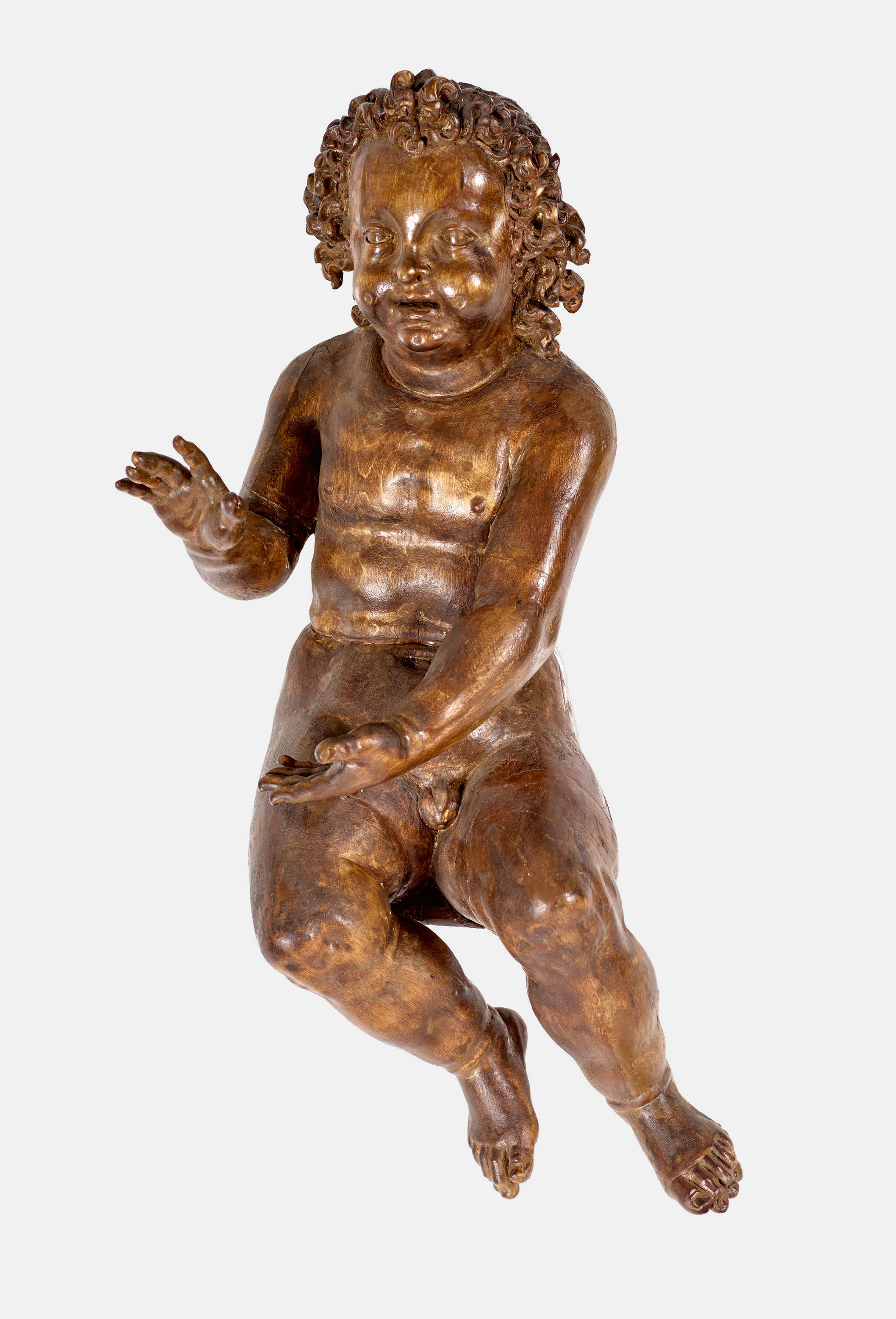 Der charakteristische Stil mit wilder Lockenpracht und den markanten Grübchen im Gesicht verweist die Figur in die Werkstatt des aus Oberbayern stammenden Hans Krumper. Der seit 1609 als Hofbildhauer tätige Künstler entwickelte aus dem niederländisch-italienisch geprägten Manierismus eine eigenständige frühbarocke bayerische Plastik.