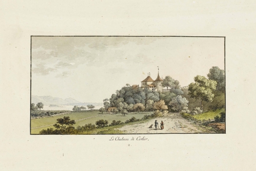 "Nach der Natur gezeichnet. Bern, zu finden bey Aberli und Rieter, 1782." 10 kleine Ansichten: 1. "Luschertz, près du Lac de Bienne". 2. "Le Chateau de Cerlier". 3. "L′Isle St. Jean, près du Lac de Bienne". 4. "Pont de Thiele, près du Lac de Neuchâtel". 5. "Au Pont, près du Lac de Joux". 6. "Au Pont, près du Lac de Joux". 7. "à Charbonieres, près du Lac de Joux. 8. "à Orbe". 9. "à Orbe". 10. "à Montcherand, près d′Orbe".
