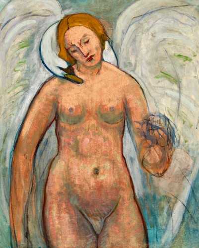 Öl, Gouache und Kreide auf Lwd., doubliert, verso a. Keilrahmen Atelier-Stpl., 81x65 cm