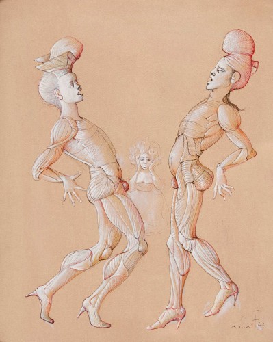 Rote und schwarze Tusche sowie Deckfarben, sig. u.r., verso a. Rahmen betitelt, 44,5x35 cm (LM)