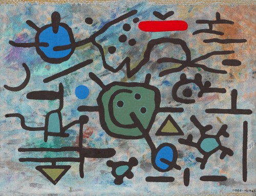 Tusche und Aquarell auf Gaze, auf Hpl., sig. u. dat. 1969 u.r., verso betitelt u. num. U(T)1738/1969, 21,5x27 cm