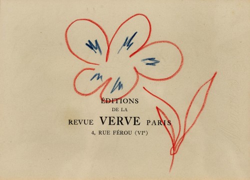 Farbstift, verso handsig. u. gewidmet "à Pierre Brune", typografisch bez. "Édition de la Revue Verve Paris...", 17,5x24,5 cm