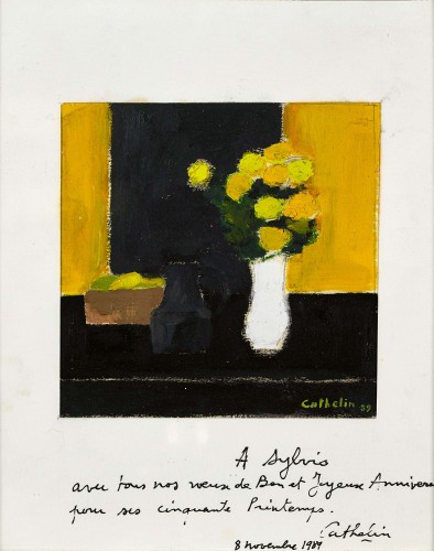 Öl auf Malkarton, sig. u. dat. (19)89 u.r. sowie a. Unterlage gewidmet, 20x20 cm