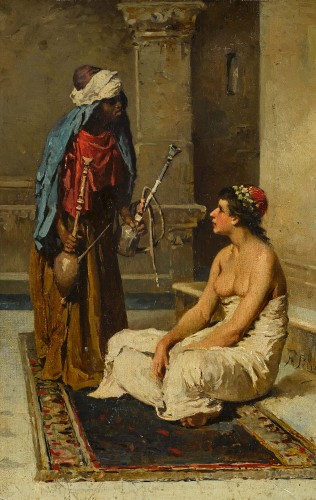 Orientalische Szene mit entblösster Frau.