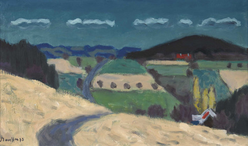 Öl auf Hartplatte, sig. u. dat. (19)73 u.l., verso bez. "bei Oberbalm", 40x67 cm