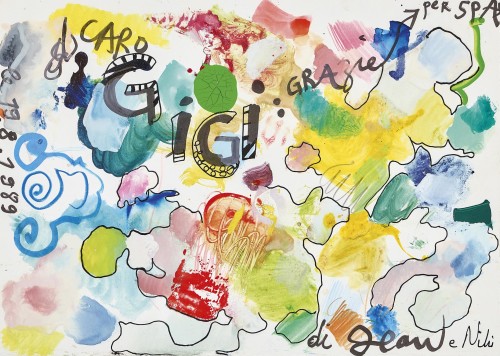 Mischtechnik auf Papier, sig. u.r., dat. "19.8" 1989 sowie bez. "Caro Gigi (...)" o.l., 25x35 cm (BG)