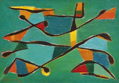 Öl auf Leinwand, sig. u. dat. (19)49 u.l., verso a. Keilrahmen betitelt, 24x35 cm