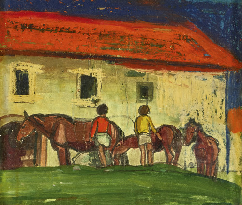 Öl auf Malkarton, verso a. Ausstellungs-Etikett sig., dat. 1962 u. betitelt, 29x31,5 cm