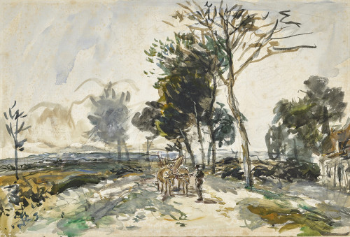 Aquarell, Gouache u. Bleistift auf Papier, sig. u.r. sowie u.l., 30x45 cm (BG)