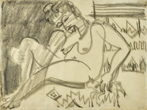 Schwarze Kreide auf gelbem Japanpapier, verso Nachlass-Stpl. "K Da/Bf 17", 33,5x45 cm (BG)