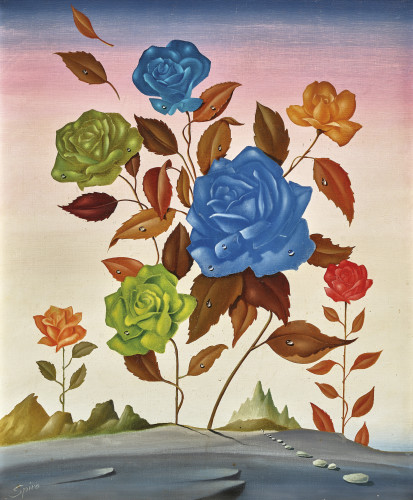 Landschaft mit Rosen.