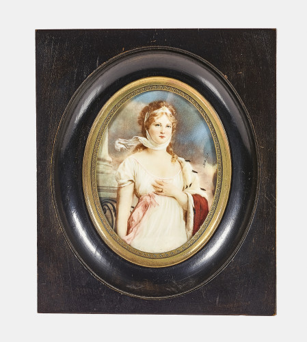 Wohl Darstellung von Marie Thérèse Charlotte de Bourbon. Gouache, wohl auf Elfenbein, sig. "Saint." M.r., 8,5x6,3 cm (hochoval), gerahmt