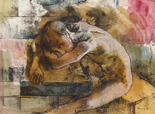 Sitzender, vornüber gebeugter Jünglingsakt.
