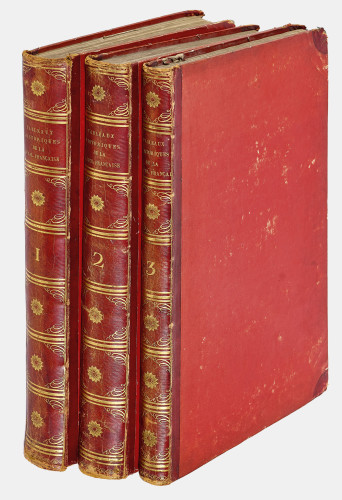Didot für Aubert, Paris 1804. 3 Bde. In französischer Sprache. Mit 3 gestochenen Frontispizen und 219 Kupferstichtafeln nach Jean Duplessis-Bertaux, Abraham Girardet, Nicolas Ozanne, Jean-Louis Prieur, Jacques François Joseph Swebach-Desfontaines und Vény, gestochen von Pierre-Gabriel Berthault, Jean Desaulx, Claude-Nicolas Malapeau und Claude Niquet. Rote Halbmaroquin-Einbände mit golgeprägten Rückentiteln, Gr.-Folio
