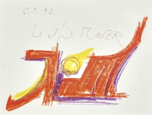 Fettkreidezeichnung, geschabt, sig. o.M., dat. 6.2.(19)92, 17x22 cm (LM), gerahmt