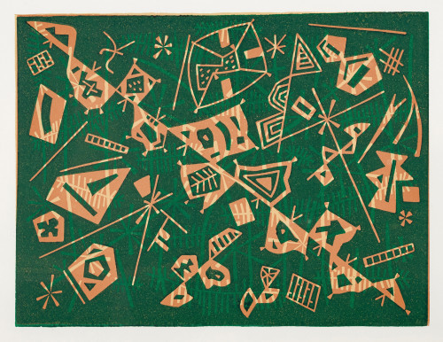 4 Blätter mit verschiedenen Motiven. Farblinolschnitte, zum Teil handsig., dat. u. num., div. Formate