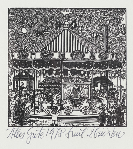 2 Blätter: 1. Das Rösslispiel. 2. Waschtag. Holzstiche, je handsig. u.r., 9,5x9,5 cm bzw. 15,3x9 cm (BM)