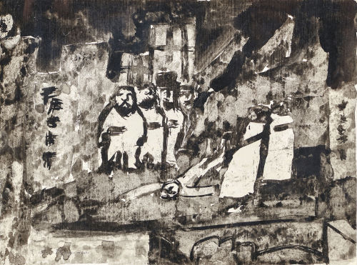 Tuschpinsel, laviert, sig. u.l., verso a. Abdeckungs-Fragmenten an Ettore (Cella) gewidmet (August 1980) sowie num. K.4254/78 u. bez.,
