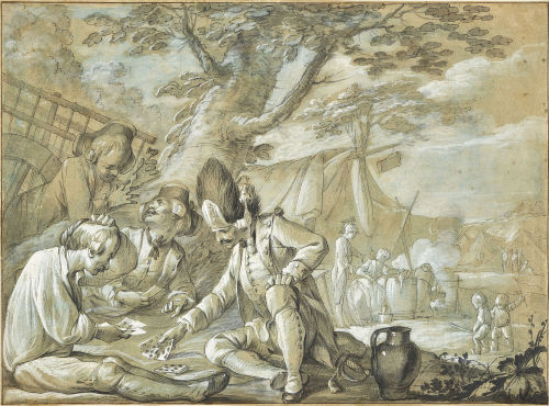 Feder in Schwarz, laviert, weiss gehöht, auf Bütten, 28,2x38 cm (BG), gerahmt