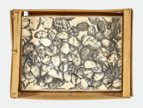 Multiple aus Ölkreide über Faksimile auf Leinwand, in Holzkiste, sig. "Al Hofkunst" u. dat. (19)83, H: 8 cm, B: 41 cm, T: 30 cm