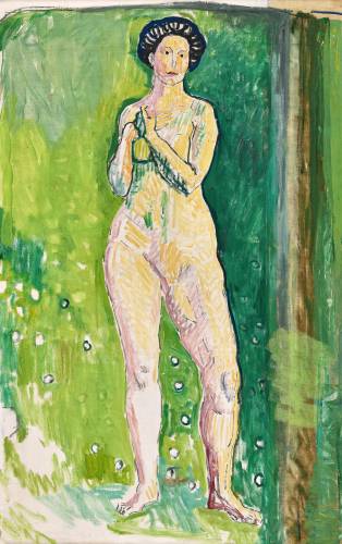 Öl auf Leinwand, sig.(?) (nur unter Mikroskop sichtbar) sowie kaum sichtbarer Sig.-Stpl. u.r., verso Nachlass-Stpl. "Berthe Hodler", 130x80,5 cm