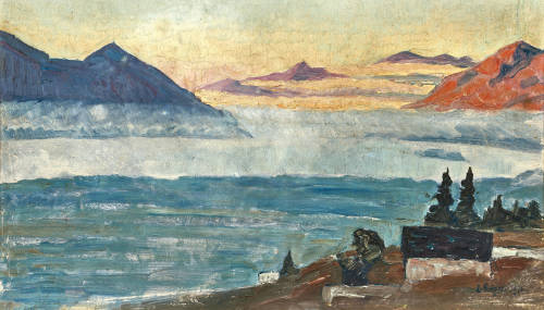 Öl auf Hartplatte, sig. u. dat. 1926 u.r., verso auf Etikett betitelt, 30,5x52 cm