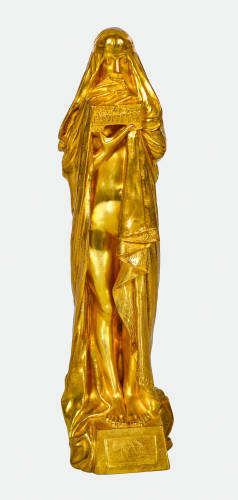 Bronze, feuervergoldet, a. Stand sig. "FixMasseau", verso Giesser-Stpl. "Siot Paris" u. num. Y813, umseitig Verkaufs-Etikett "Horlogerie Bronzes Honegger Lyon", H: 28 cm