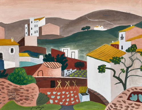 Öl und Gouache auf Sperrholzplatte, sig. u.l., verso num. 106 u. gewidmet "Jojeux Noël", 27x35 cm