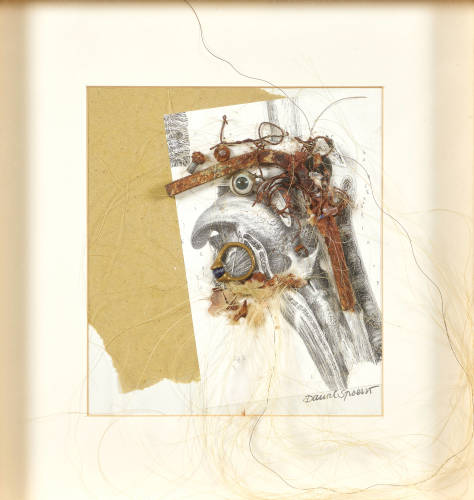 Assemblage, sig. u.r., verso dat. "21. Juni" (19)97, betitelt u. gewidmet, 31x29 cm (BM)