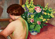 "Femme nue avec des fleurs".