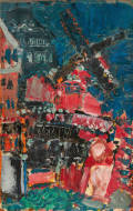 Selbstporträt mit Staffelei und Palette.