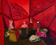 Stillleben mit Flaschen.