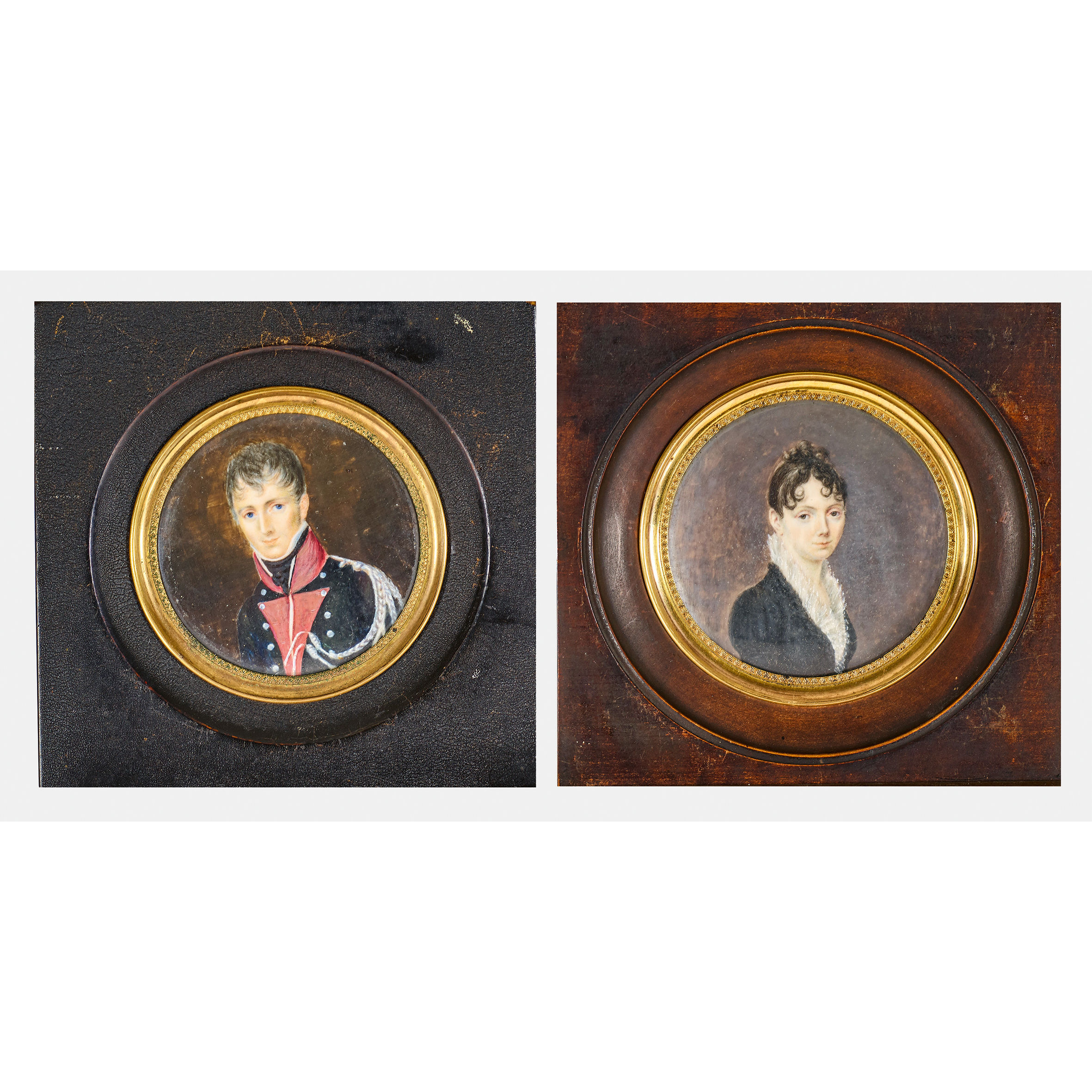 Gouachen auf Elfenbein, verso bez. "Henriette de Gumoens née de Willading, a l'âge de 39 ans, en 1809, peinte par sa soeur Julie de Willading, et morte en Juillet 1831" und "Charles Steiger de Riggisberg, par sa tante Julie de Willading en 1809",