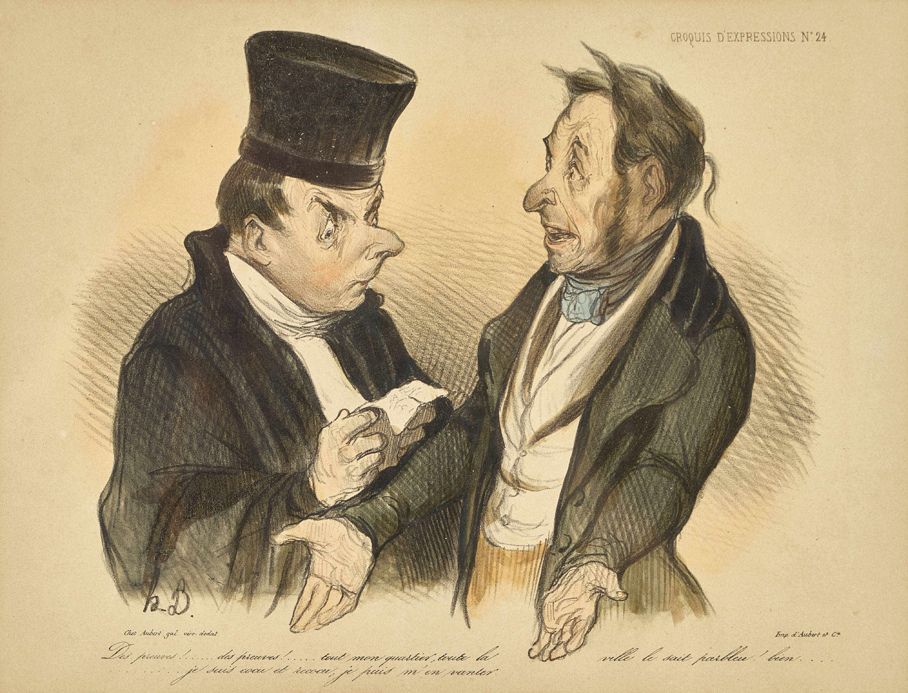 im Stein mgr. "h.D." u. bez. "Chez Aubert gal. véro dodat" u.l., "Imp. d. Aubert et Cie" u.r.,