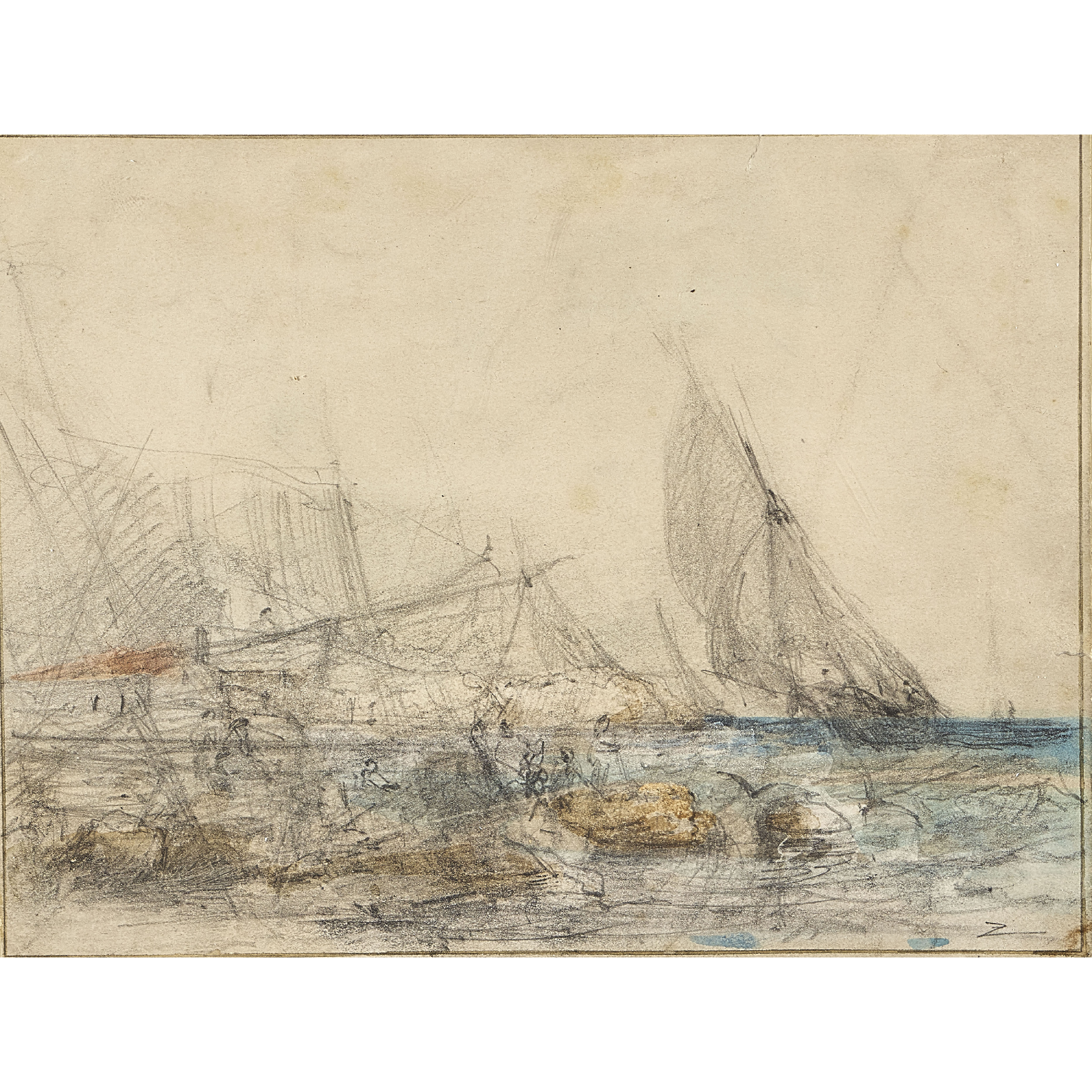 Segelschiffe vor der Küste.