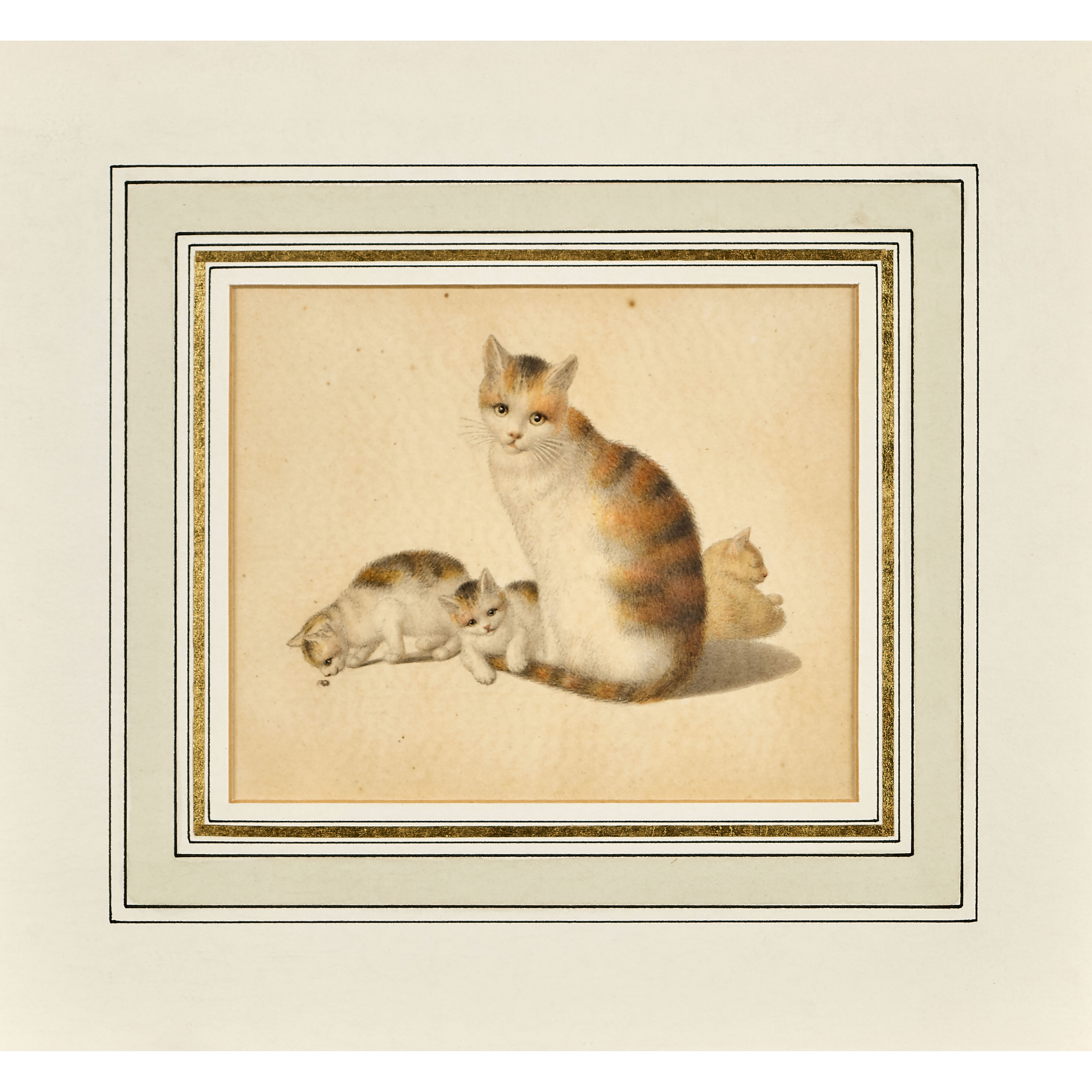 Katzenmutter mit drei Jungtieren.