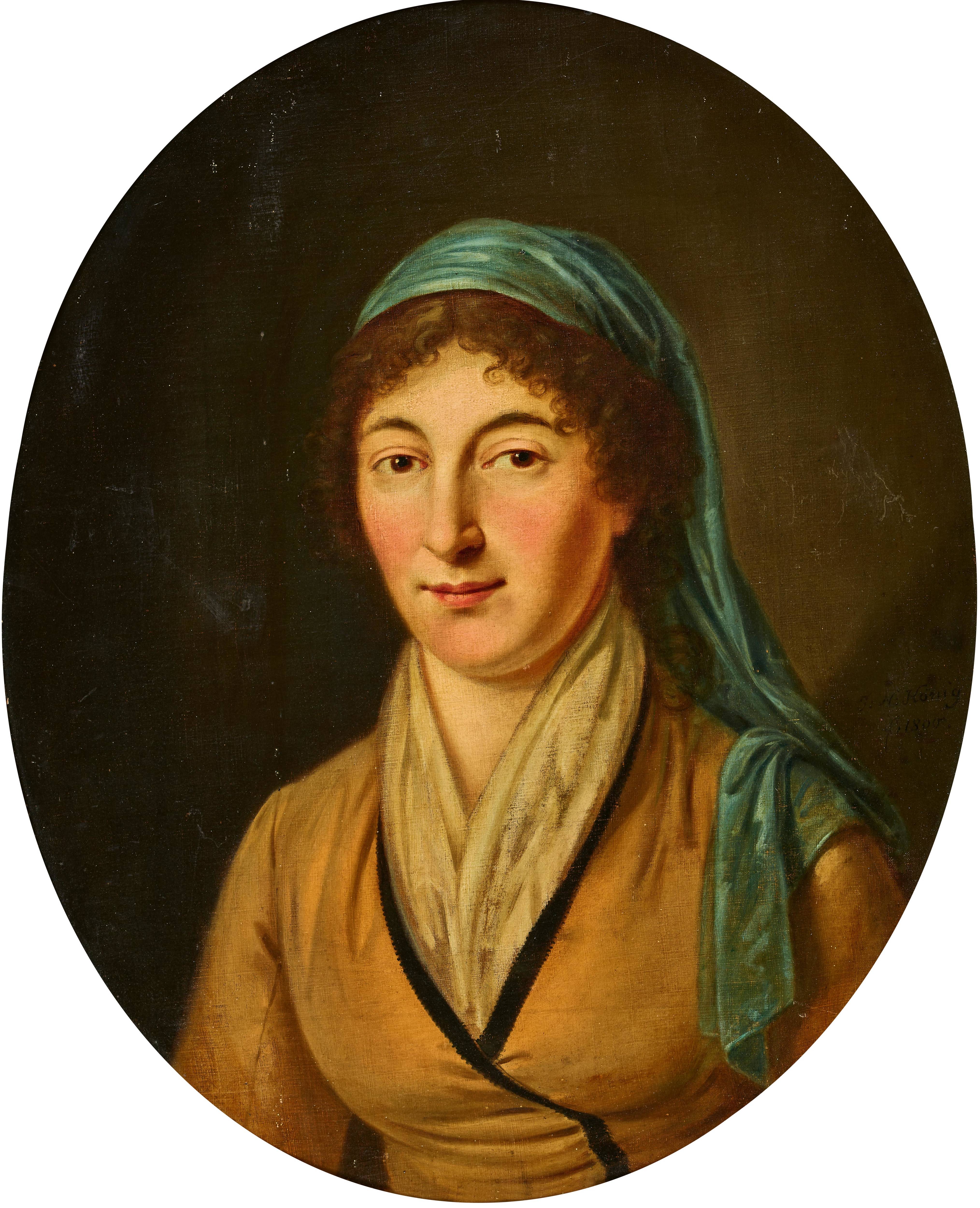 Öl auf Leinwand, doubliert, sig. u. dat. 1800 o.M., verso bez. (auf doublierte Lwd. übertragen) "Catharina Sprungli geb: Haller, née 3 May 1763",